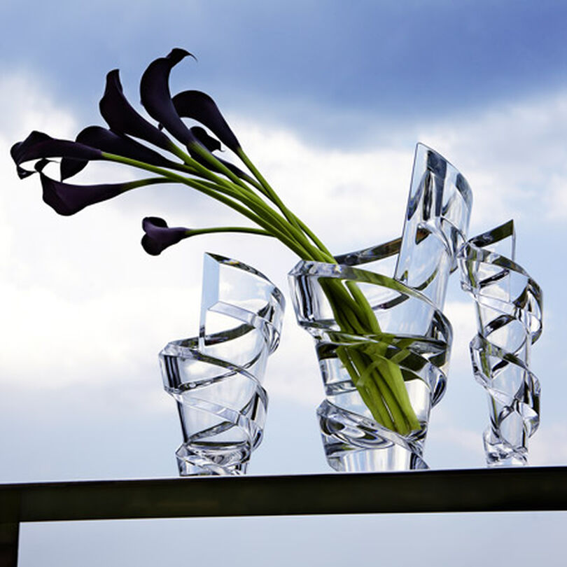 Known for his love of precious materials, the pleasure he derived from playing with the laws of transparency and his desire to always elicit surprise with unexpected creations, Thomas Bastide has been working with Baccarat for over forty years. Spiral vases, asymmetrical pieces, tilted glasses… through each creation, the designer expresses his great creativity as well as his taste for innovation.