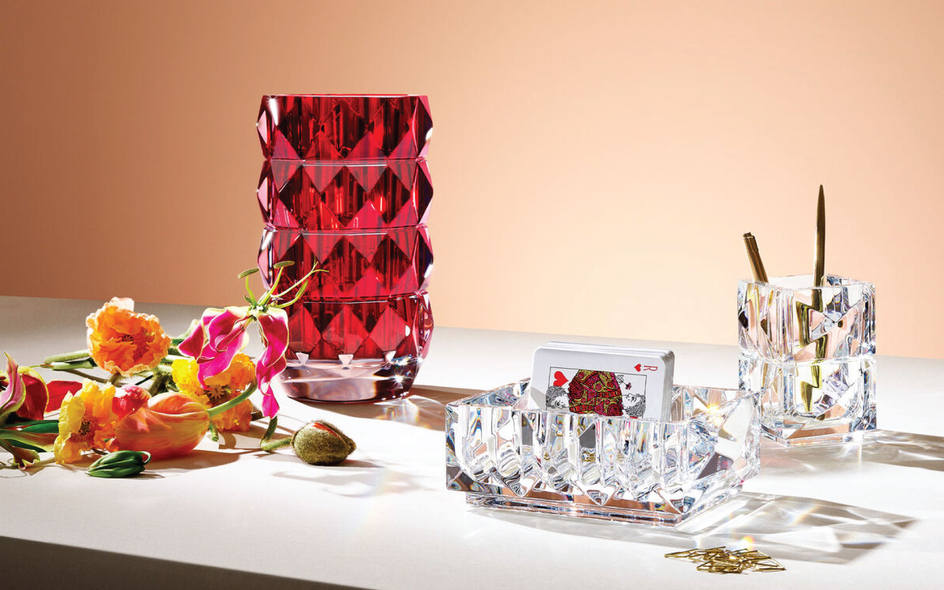 In 1933, Georges Chevalier, designer of Maison Baccarat, designed a first collection of jewelry inspired by Egypt and baptized it Louxor. In 2023, the Louxor range reinterpretation by Thomas Bastide is a brilliant expression of the famous “pyramid” bevel cut haracteristic of many pieces : “Bar” collection, vases, glasses, carafes and other everyday objects…