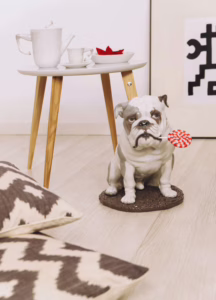 Bulldog with Lollipop Dog Figurine This bulldog has been surprised by his owners playing with some sweets and adopts a funny attitude of disguise. This collection starts from this idea to develop some nice figurines of mascots represented in real size with all luxury of details and the playful complement of the sweets, that contribute a colorful and surprising contrast. A glossy porcelain finish for a perfect piece for animal and pet lovers. Contact Us
