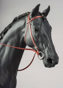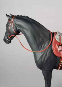 English Purebred Horse Sculpture This elegant sculpture is made in matte porcelain with glazed details and decorated with a stunning combination of colors: black in the body of the horse, grey in the saddle and an intense red tone in the blanket and harnesses, with different glazed, matte and metallic finishes. A perfect piece for decorating all kinds of interiors or as a gift for a horse or animal lover. Handcrafted in the Lladró workshops in Spain. Contact Us