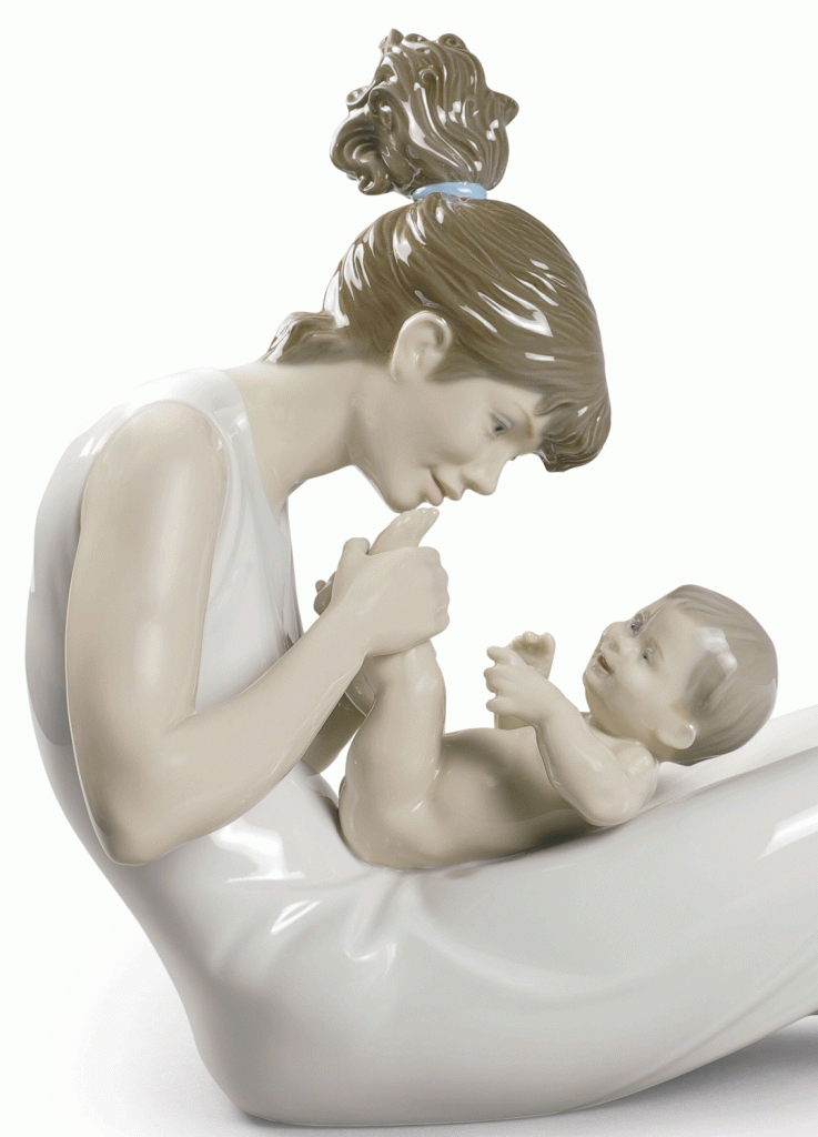 Everything is closeness, tenderness and laughter. She is his sun, he is her sky. A delightful glossy porcelain piece decorated in soft pastel colours, ideal as a gift to a mother.