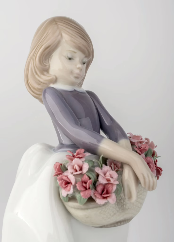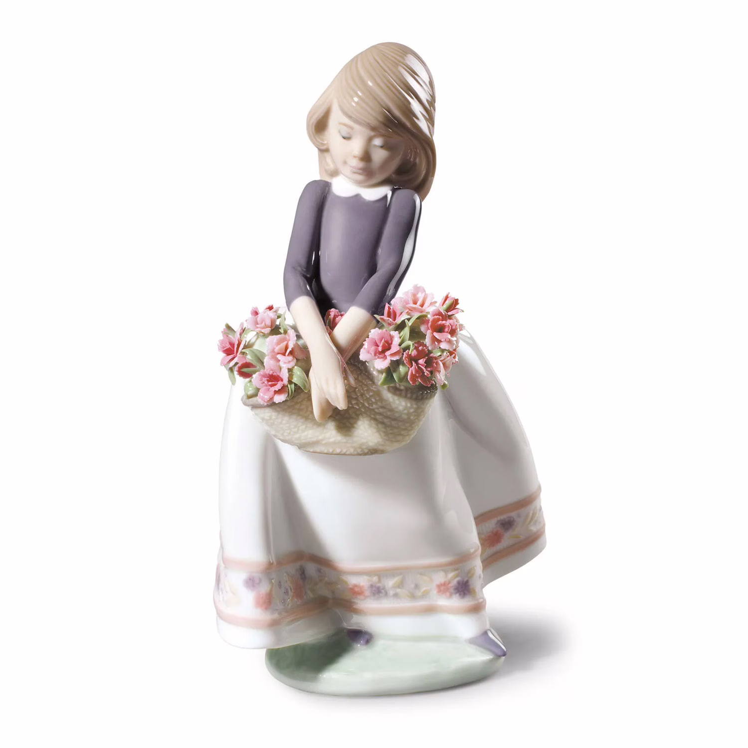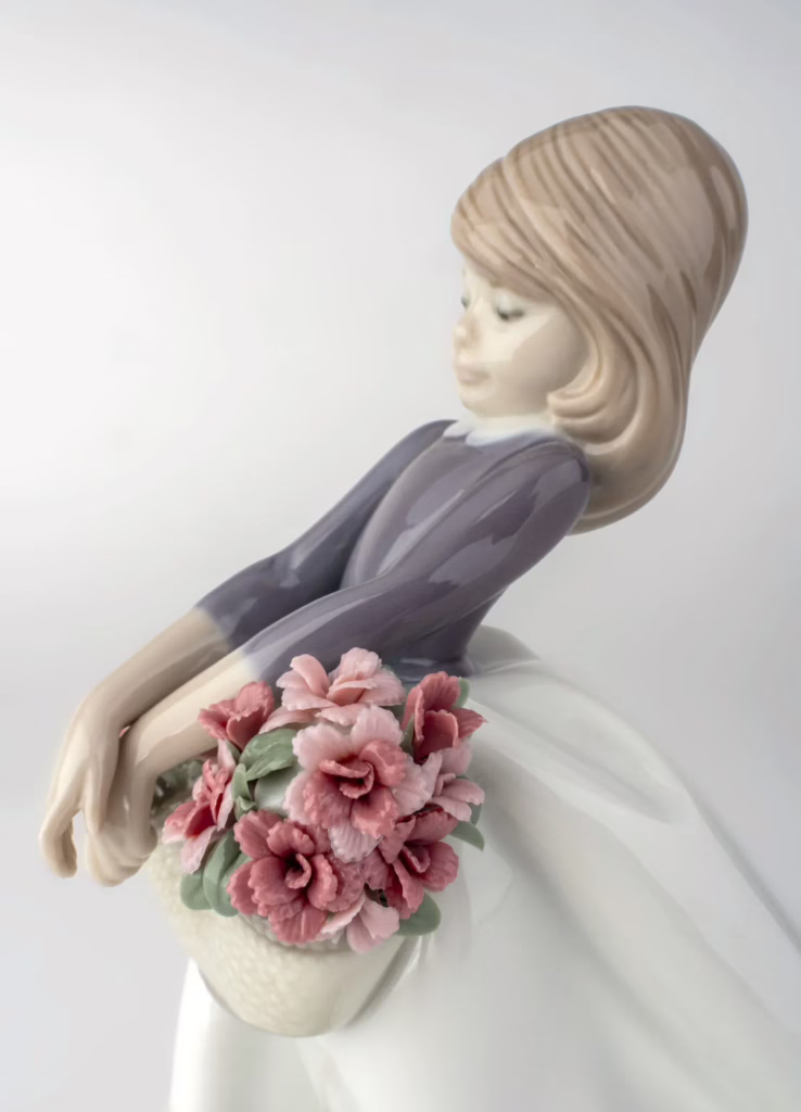 May Flowers Girl Figurine. Special Version. Special edition of one of the classic pieces of the Lladró catalogue. With an updated decoration that emphasises the exquisite ornamentation of the skirt and the spectacular bouquet of carnations delicately modelled petal by petal by the expert hands of the brand’s artists. Contact Us