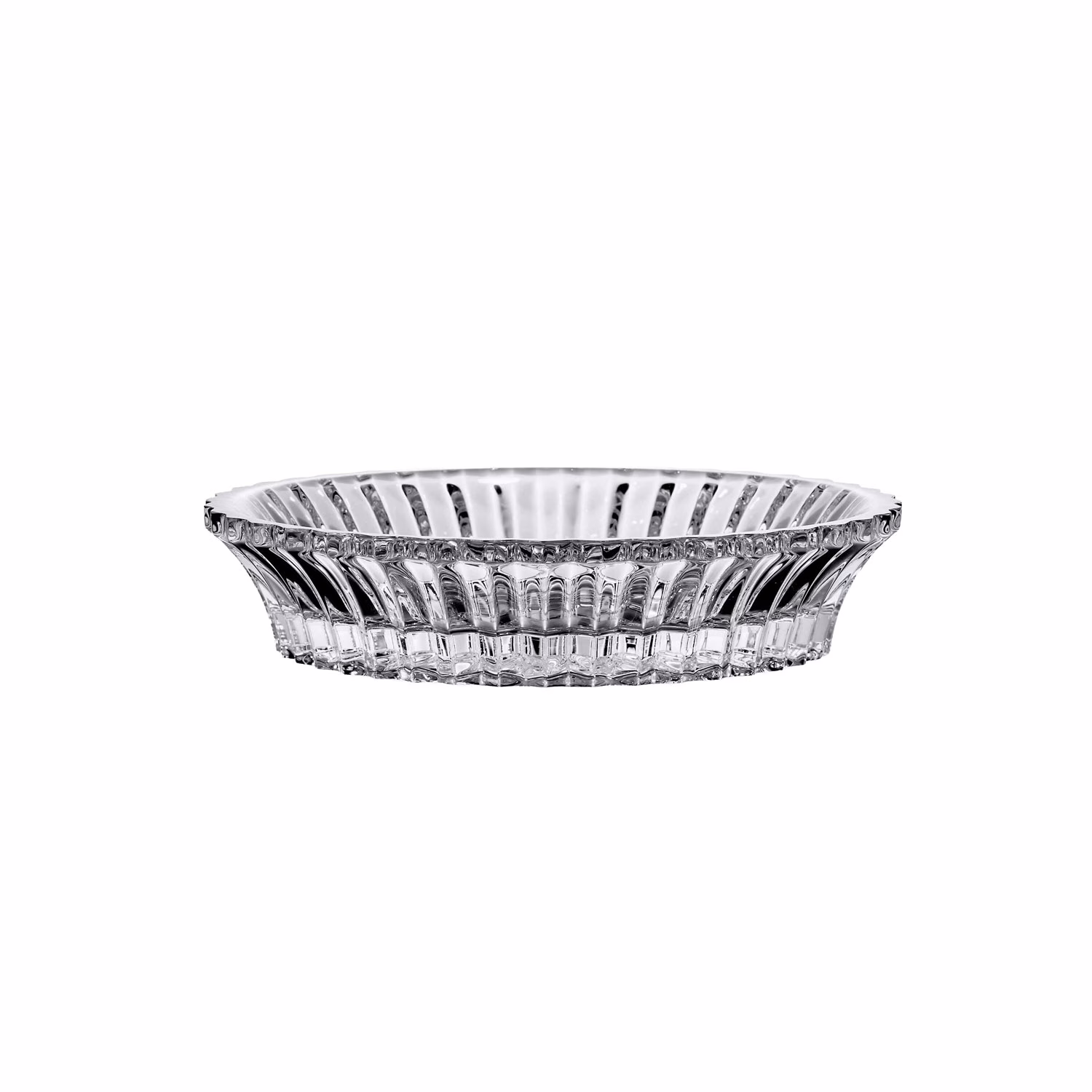 Mille Nuits Coaster The bottom of the crystal bottle, designed by Mathias for the Baccarat « Mille Nuits » collection, is simply extraordinary. It protects your tabletop when tasting wines. The edge is cleverly crimped like a delicious pie. At the center, two concentric circles variegate the texture of the surface of the crystal and make the light sparkle. The center of each circle, irradiates alternating lines, illustrating the magic and prismatic qualities of Baccarat crystal. Contact Us