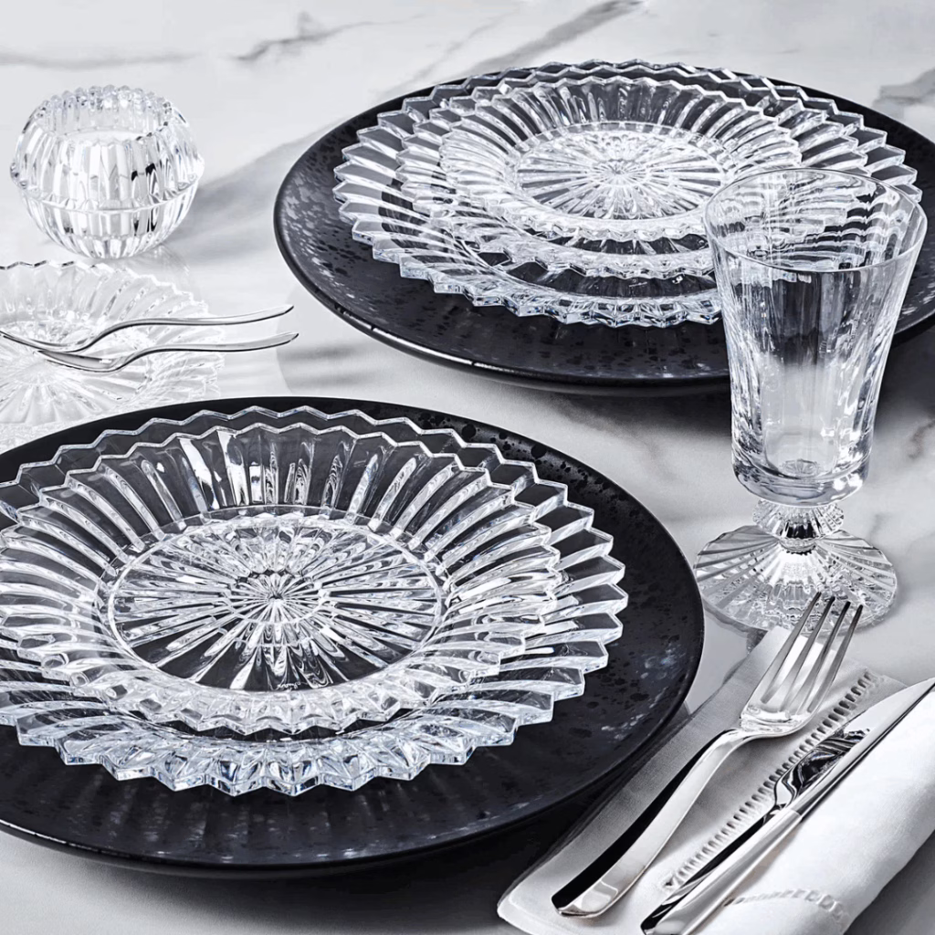 MILLE NUITS PLATE M The grooved circumference is a stunning framework that epitomizes Baccarat’s fine craftsmanship. Moreover, the detailing etched into the underside of each plate yields a stunning optical effect. As the lines irradiate from the center, they highlight the prismatic possibilities of the Baccarat crystal. The dessert plate is part of a three-piece set that also includes a side plate and dinner plate (each produced in standard European dimensions). Perfect for entertaining, the dessert plates are a flawless way to finish a meal. Mille Nuits is a reference to the 1001 Tales of The Arabian Nights. Designed by Mathias for Baccarat, the collection also extends to stemware and lighting. Contact Us