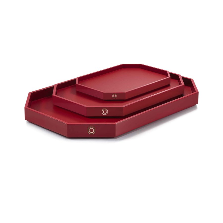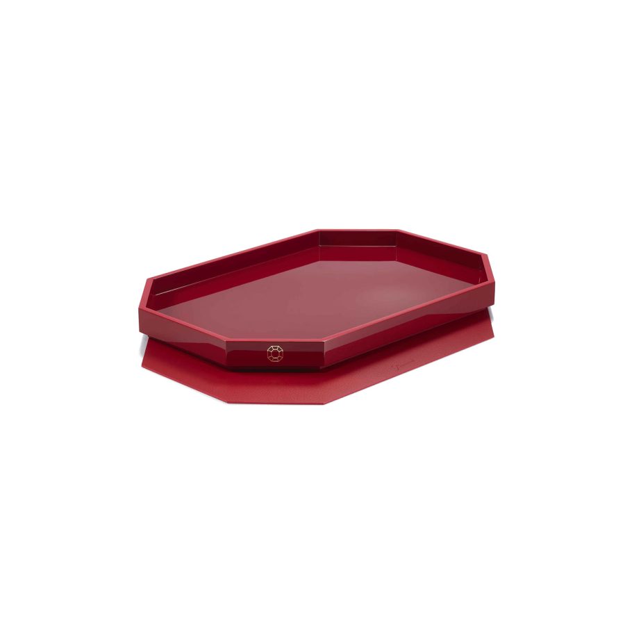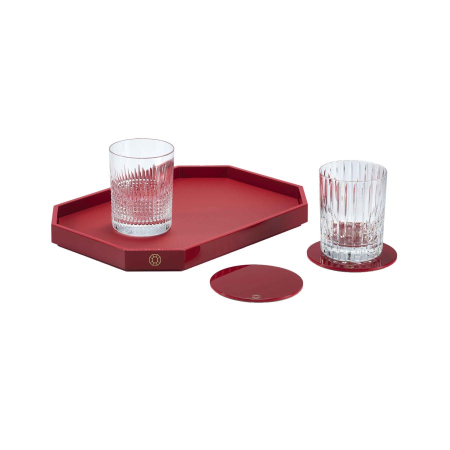Octogone Tray S Red is a beautiful, lacquered piece, available in 3 sizes. Inspired by the red octagonal tassel, the iconic signature of Baccarat, a series of refined lacquered accessories comprise these new pieces, which come to enlarge the Octogone collection. The tray, in the shape of an octagon, is meticulously handcrafted using ancestral artistry. Its brilliant surface captures the light and highlights Baccarat’s crystal creations. Each tray comes with a removable leather insert, adding an elegant contrast of materials and textures. The Octogone tray exists in a variety of shades, enriched over the seasons and matched with the coaster from the same collection. Contact Us