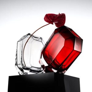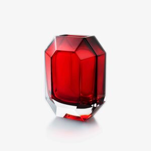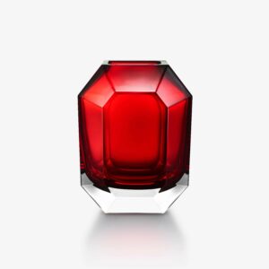 Octogone Vase Red The signature of all Baccarat chandeliers, the octagonal tassel is here transformed into a red crystal vase, the signature colour of Baccarat obtained with pure gold. Like a delicately cut precious stone, the Octogone vase is a true gem to embellish every ambiance. The clear-cut lines, corners and roundness are combined to reflect the light: a brilliant piece to illuminate the finest bouquets. Contact Us