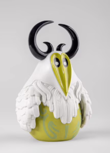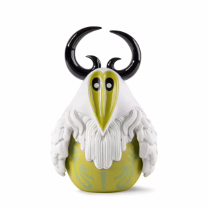 One of the best-known yokai is Tengu, a mountain spirit with avian features, famous for its prominent nose and defiant temper. This interpretation in matte porcelain reimagines the legendary Tengu through a contemporary lens, emphasizing refined forms with a strong visual impact. The use of solid colors such as pistachio green, white, and black enhances this clean aesthetic and creates a vibrant contrast.